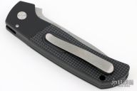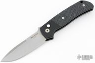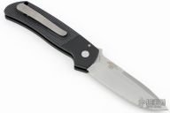 This ATCF Auto by Pro-Tech features a stonewashed Magnacut blade with notched thumbrest. The handle has a black aluminum frame with black G10 scales and a tip up milled titanium clip with hidden screws.  Pearl Push Button. Comes with original box and papers. Excellent Condition.