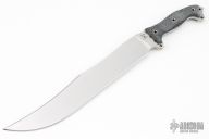 This MOAT by Busse Custom Shop features a clip point blade with satin finish, .335" blade stock and 2.255" blade depth, full tang construction. The handle has black canvas micarta scales and an extended tang with lanyard holes. New from maker.