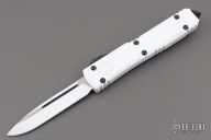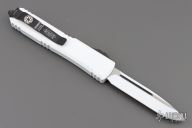 This Storm Trooper Ultratech OTF by Microtech Knives features a s/e white cerakoted blade with a standard edge and a white cerakoted aluminum handle. Black stainless steel clip. Glass breaker. Serial number 910 and dated 06/2023. Comes with original box and papers. New conditon.