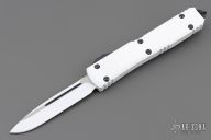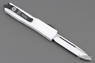 This Storm Trooper Ultratech OTF by Microtech Knives features a s/e white cerakoted blade with a standard edge and a white cerakoted aluminum handle. Black stainless steel clip. Glass breaker. Serial number 759 and dated 06/2023. Comes with original box and papers. New conditon.