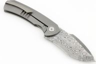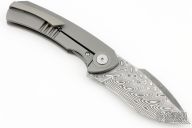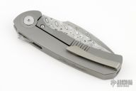 This Integral Framelock Flipper by Daniel Carraher features a Damasteel recurve blade.  The handle features a bead blast finish integral titanium frame with a matching tip up pocket clip. Has overtravel stop and lock insert. Nice action, detent and blade seating. Excellent Condition. Comes with a zippered case and COA