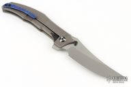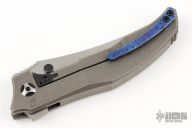 This Persian by Custom Knife Factory is a Peter Rassenti Design.  The knife has a two-tone finished blade with a notched thumbrest and flipper. The handle has a tumbled titanium frame with tip up zircuti clip, lanyard hole, stainless lock face insert with overtravel stop.  Zircuti pivot collars. Rides on bearings, nice detent, lockup and blade seating. #59 on flipper tab. Comes with nylon Velcro case and COA Dated 7/2023 and #59. Excellent condition.