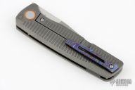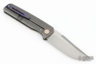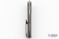 One of the latest folders from CKF, the GNOME! This frame lock front flipper has a two tone satin/CKF Wash blade and milled titanium handles with internal milling for weight reduction. It runs on a multi row bearing system. It has copper pivot collars, a zirc backspacer, and ZircuTi pocket clip. Designed by Danila Marechek.