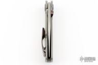 The new Rampage model is a Collaboration with CKF and Copperhead Metalworks. It features a two-tone Bohler M390 blade with titanium handles. It has ZircuTi pivot collars, thumb stud collar, and pocket clip. It has a unique oversized titanium skull thumb stud to open it with. Inside the scales you will find internal milling detailed with CKF & MRBS branding.