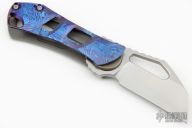 This is the OK Knife from CKF! This is a folding knife that does not have a lock. It has a M398 Chisel Ground CKF wash blade that rides on bearings. One side of the handle is tumbled titanium and the other side has a large pocket clip that acts as a scale.