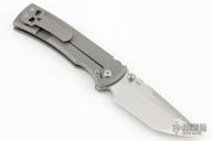 This Chaves Ultramar Redencion Tanto features a satin finished blade with the Chaves logo. The handle is made up of stonewashed titanium, skull pocket clip (positioned for tip up carry), and a matching titanium backspacer. Comes with original box and an extra regular titanium pocket clip. Excellent condition.