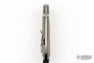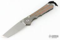 This Large Inkosi from Chris Reeve Knives features a tumble finished blade with dual blue thumb studs and notched thumbrest. The handle has a bead blasted titanium frame over a single barrel spacer with a matching titanium tip up clip. Natural canvas micarta Inlays. Comes with original box, sheath, anodized titanium clip, lanyard and tooles, COA dated March 29, 2022. Excellent Condition.