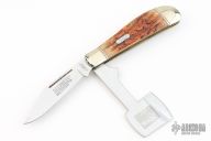 This Slipjoint by Marbles features mirror finished blades with nail nicks. The handle has nickel silver bolsters, jigged bone covers, brass liners and a stainless steel springs. Has some light scratches, otherwise excellent condition.