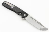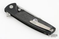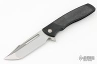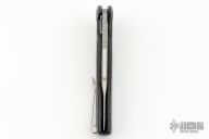 This Evo Typhoon from Brian Nadeau features a hand rub satin finished blade with a fuller and thumbrest. The handle is comprised of a black tumbled titanium frame with marble carbon fiber inlays, satin titanium tip up clip. Rides on bearings, nice detent, lockup and blade seating, stainless lockface insert. Excellent condition. Comes with original box.