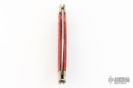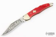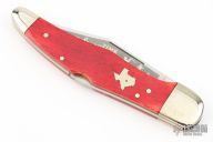 This lockback by Lone Star features a mirror polished blade with nail nick. The handle has nickel silver bolsters, red bone scales, brass liners and steel backspacer. #113 on the bolster. Has a few light scratches, otherwise excellent condition.