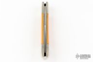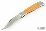 This Lockback by Schrade and George Wostenholm features a satin finished blade with nail nick. The handle has nickel silver bolsters with integral liners, yellow paper micarta covers, steel backspacer. M3914 on the bolster. Has some light scratches, otherwise excellent condition.