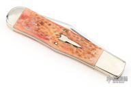 This knife by Robertson Handmade Knives features a mirror polished blade with nail nick. The handle has nickel silver bolsters, jigged bone covers, brass liners and a steel spring. Has some light scratches, otherwise excellent condition.