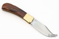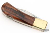 This Vintage Lockback by Ralph Bone features a satin finished blade with nail nick. The handle is comprised of brass dovetailed bolsters and rosewood scales, brass liners and steel backspacer. Stamped J4 82.1 on blade. Excellent condition.