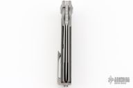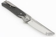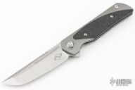 This Warrior 2 flipper by Reate is a Liong Mah design, it features a satin finished blade with a notched thumbrest and flipper. The handle has a milled and bead blast finished titanium frame with marble carbon fiber inlays, custom pivot, tip up titanium clip with ceramic ball, stainless lockface insert. Rides on bearings, nice detent, lockup and blade seating. Comes with original pouch. Excellent condition.