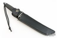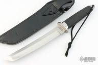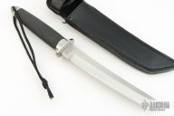 This Magnum Tanto by Cold Steel features a trailing point tanto style San Mai blade with .187" blade stock and 1.110" blade depth. The handle is comprised of a steel guard and pommel with a textured rubber grip over hidden tang construction. Includes original black leather sheath with belt loop. Excellent condition.
