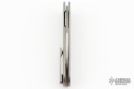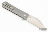 This MBK Slayback by Monterey Bay Knives is a Ray Laconico design, it features a satin finished ZDP-189 San Mai blade with notched flipper. The handle has a bead blasted titanium frame with stainless steel liner, tip up titanium clip. Comes with zippered case. Excellent condition.