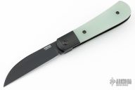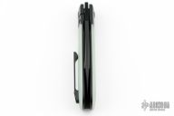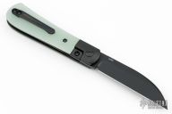 This swayback Front Flipper by Enrique Pena features a black finished blade with a front flipper and notched thumbrest. The handle has black titanium bolsters, G10 scales with a black titanium backspacer and matching tip up pocket clip. Excellent condition. Comes with original box.
