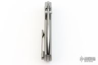The Old Guard was designed by Ray Laconico and Sanford Owen as a back-to-basics style folder. The blade features a satin finish with dual thumbstuds. The handle features a bead blasted titanium lock side and matching titanium tip up pocket clip.  Includes a padded zippered case and extra hardware.  Excellent condition.