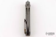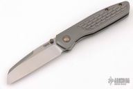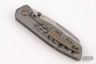 This Bravo 1 Framelock Front Flipper by Enrique Pena features a satin finished blade with a front flipper, dual thumbstuds and notched thumbrest. The handle has a milled titanium frame with an anodized titanium backspacer, pivot collars and tip up pocket clip. Comes with original box. Excellent condition.
