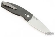 This Neutron Linerlock by Three Rivers features a stonewash finished blade with dual thumbstuds. The handle has carbon fiber scales, titanium liners with a matching tip up reversible clip. Nice detent, lockup and blade seating. Comes with original box, and papers. Excellent condition.