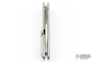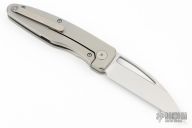 This knife features a satin finished blade with a notched flipper tab. The handle features a bead blasted titanium frame with a matching tip up pocket clip. Includes a padded zippered case and box. Excellent Condition.