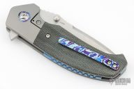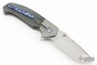 This is his production model Mini Diesel Flipper produced by Reate. It is built to the highest quality standards of quality, using premium materials and methods. The blade is hand rub satin finished and rides on ceramic caged bearings with a ceramic detent. Also, this knife features a stainless steel lock insert for longevity of use.