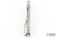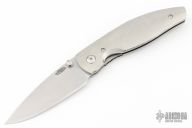 This Atom Linerlock by Three Rivers features a stonewash finished blade with dual thumbstuds. The handle has milled titanium scales, titanium liner with a titanium tip up reversible clip. Nice detent, lockup and blade seating. Comes with original box and papers. Excellent condition.