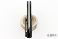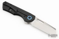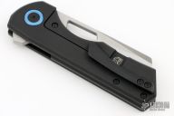 This Production Yeager by Brian Brown features a wharncliffe style blade with belt satin finish. The handle has a black PVD titanium frame with anodized titanium pivot collars, black PVD tip up clip and backspacer. Comes with original box and zippered case. Excellent condition.