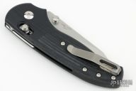 This Shadow River lok by Three Rivers features a tumble finished blade with dual thumbstuds. The handle has black G-10 scales, titanium liners and tip up reversible clip. Nice detent, lockup and blade seating. Excellent condition. Comes with original tube