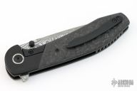 This VBR by Reate is a Mark Varga design, it features a Damasteel blade with flipper. The handle has a black PVD titanium frame with marble carbon fiber scales, black backspacer and tip up clip. Includes the original box and zipper case.  Excellent condition.