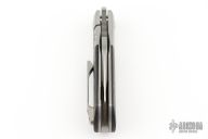 This Apache Front Flipper by Enrique Pena features a satin finished blade with a front flipper and notched thumbrest. The handle has titanium bolsters, marbled carbon fiber scales with a titanium backspacer and matching tip up pocket clip. Includes a Pena X-Series padded box. Excellent condition.