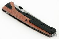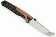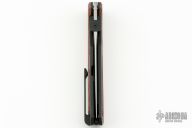 This Matador by Suprlativ Knives features a satin finished m390 blade with a thumb disc.  The handle features a black PVD titanium frame with Orange Micarta inlays.  Titanium tip up pocket with a floating backspacer.  Includes the original box. Excellent condition.