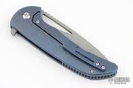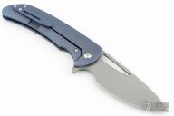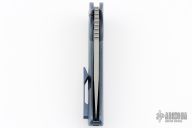 This Archbishop by Ferrum Forge features a tumbled drop point blade with thumb hole and flipper. The handle has a tumbled titanium frame with matching backspacer and tip up clip. Comes with a zipper case. Excellent condition.