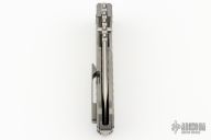 The PMP Kodiak, a true beast among folding knives. Its robust design features a beefy 4-inch M390 blade, measuring a substantial 0.196 inches thick, ensuring exceptional strength and durability. With a titanium frame lock mechanism and a weight of 9.98 ounces, this formidable tool is truly impressive in hand and sure to be a point of pride in any collection.  Comes with original box and papers. Excellent condition.