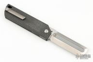 The MaximX (SpaceXi) Flipper version 1 is the LARGE brother of the SpaceX.  The MaximX is the second version of the SpaceX that runs on bearings that allows it to almost fly open.  Its complexity is in its simplicity.  It is sleek and simple, but with a complex 6 face grind with fullers.  It is a modern take on your grandfather’s pocketknife.  It is a pleasure to hold and use.  The Blade is VG-10 high grade knife steel and the handles are carbon fiber.  Comes with original box. Excellent condition.
