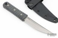 knife. A domed center screw on the outward (omote) side, reminiscent of the emperor node of traditional ray skin handles, provides indexing. The sheath is expertly crafted from Kydex by our good friends at TRC knives. This knife is the result of decades of experience, the ideal EDC fixed blade.