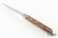 Handle: 1st choice patterned pistachio wood from southern France. The Savoy decoration is made with inlayed wires around the central pin of the handle.
