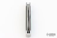 This two-blade Cattle Knife by Charlie Bell features hand rub satin finished blades with nail nicks. The handle has stainless steel bolsters, front and rear, green paper micarta covers with a stainless steel escutcheon, stainless steel liners and springs. Half stop on each blade, flush in all positions. Comes with a zippered case. New from maker!