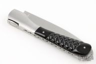 Tecnical tips : Forged anc chiseled spring with Corsica embossement. The spring with its lock-back system is made from 3 mm thick stainless steel Z20c13. A solid hardenned bladestop is provided : That helps maintain the edge of the blade. Easy openning and folding smooth system.