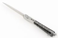 The "Sperone" - the spur in southern Corsican dialect- has been created with Antoine Zuria and Robert Beillonnet (Awareded skillest custom French knife maker in 1997 and 2000). It is an evolution of the Vendetta Zuria & Gilles® featuring the Corsica island embossed into a forged and chiseled spring where we have added a precision mechanism with a secure locking blade and a solid blade stop to keep a long last edge.