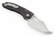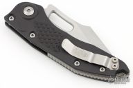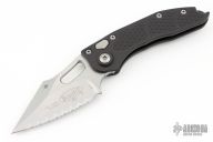 This Stitch Auto by Microtech Knives features a fully serrated stonewashed blade and false top edge, notched thumb and finger rests. The handle has a black milled aluminum handle with a bead blasted titanium backspacer and a bead blasted stainless  steel clip, tip up carry, lanyard hole at the butt. Comes with original box and papers. S/N of 10318  and dated 05/2022. Excellent condition.