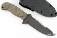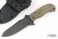 As the name implies, the WK Utility Knife is made for a variety of cutting chores. The wide blade is strong and the aggressive serration along the spine provides additional cutting/sawing options without sacrificing any of the cutting edge. The double “cross guard” makes heavy work safer for the user. Recently updated, the lined Kydex® sheath with a Micarta welt (photos coming soon) is designed for optimal carry. It was originally developed based on input from Naval Special Warfare, Senior Chief Petty Officer Thomas Ratzlaff, who was a great outdoorsman, a revered operator and a man who was integral in the development of several Team specific Winkler Knives designs, as well as the WK Field Knife. Many called him Rat, his license plate read “Carnivore”. R.I P. Senior Chief Petty Officer Thomas Ratzlaff November 3, 1976 – August 6, 2011 (Extortion 17). Knife Specifications Blade steel: 80CrV2 Black oxide no-glare finish Blade length: 4 3/4" Overall length: 9 1/2" Blade thickness: 3/16" Skeletonized full tang Sheath Lined Kydex® with a Micarta welt (photos coming soon) Designed for multiple carry options (See our Info page for carry options)