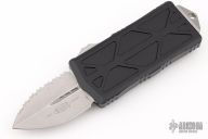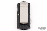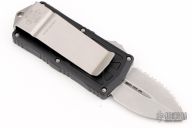 This Microtech Exocet features a stonewash finished blade with one fully serrated edge. The handle has a black aluminum handles and a stainless clip that doubles as a money clip dated 09/2022 s/n 21439. Comes with original box and papers. Excellent Condition.