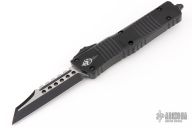 This Combat Troodon by Microtech Knives features a tumbled DLC Warhound blade with swedge. The handle has a black aluminum frame with tip down black stainless steel clip black hardware. Comes with original box and papers. 04/2023 and S/N 074. Excellent condition.