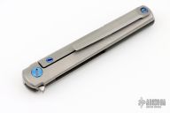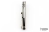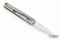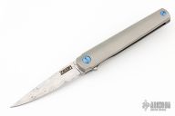 This MS3 Manhattan Special by Michael Zieba features a Damasteel blade with notched thumbrest and flipper. The handle has a blasted titanium frame with matching tip up clip and anodized titanium hardware, carbon fiber backspacer, has stainless steel lockface insert. Rides on bearings, nice detent, lockup and blade seating. Comes with original zippered case and COA. Excellent condition.