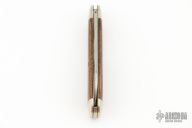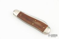 This Bird Dog Jack features a satin finished drop point blade with swedge and nail nick. The handle is comprised of pinched nickel silver bolsters front/rear, escutcheon, micarta covers, over brass liners and stainless steel spring. Includes original tube and butcher paper wrap. Excellent condition.