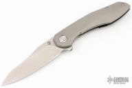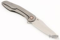This Mini Tolk from Brad Southard features a drop point stonewashed blade with notched thumbrest and flipper. The handle is comprised of a bead blast finished and milled titanium frame and matching tip up pocket clip, titanium backspacer with lanyard pin. Excellent condition.