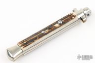 Angelo Campolin Sr. was born in 1923 in Maniago, Italy. He worked on perfecting his knife making skills before WWII and at this time made his first switchblades. After the war, in 1947 he started his company and made 30 stilettos with the marking “Angelo Campolin”. In the 1970’s Angelo’s son Gianni started to work in the company and they were specializing in folding hunting knives and also manual folding stilettos for the Robert Klaas company in Solingen Germany with their Kissing Cranes mark. In 2002 American switchblade collectors Dan Fuller, Brad West, and Tim Zinser were visiting Maniago and enjoying a few glasses of wine in a bar with Angelo Jr. and Gianni. The discussion was about a new name for some knife projects they wanted to pursue. It was Brad West that suggested the tang stamp should be AGA, for Angelo, Gianni, Angelo, thus representing three generations in the knife making business. The Campolins liked it and it stuck. In the beginning it was just a few items, but grew to the point where now there are 12 models and different scale options. The goal has been to offer quality switchblades using the old methods and traditions. Being a collector himself, Angelo Jr. knows what others like. The company headquarters has moved to Austria with production still in the original Maniago shop, as well as the others in Maniago that produce the knives for A.G.A. Campolin.