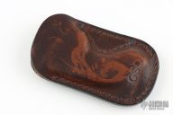 This Snail from Vox Knives is made from copper and is .315" thick. Has various stamps. Comes with card and GSD pocket sheath. Has patina, and some marks. Excellent condition.