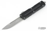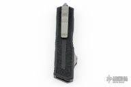 This Scarab II Gen III by Microtech features an apocalyptic finished blade with fullers. The handle has a black aluminum handle with non-slip inserts, a single glass breaker and tip down stainless steel clip. Comes with original box and papers. Excellent condition.
